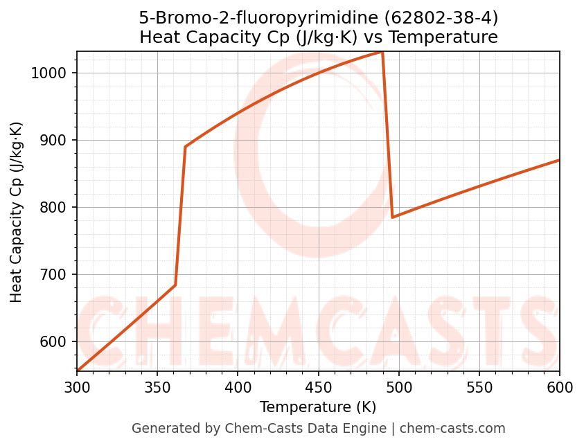 - Specific heat capacity (Cp) indicates the amount of energy required to raise the temperature of 5-Bromo-2-fluoropyrimidine and is critical for energy balance and heat-exchanger design.