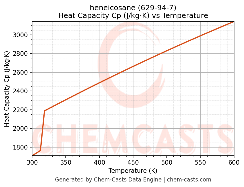 - Specific heat capacity (Cp) indicates the amount of energy required to raise the temperature of heneicosane and is critical for energy balance and heat-exchanger design.
