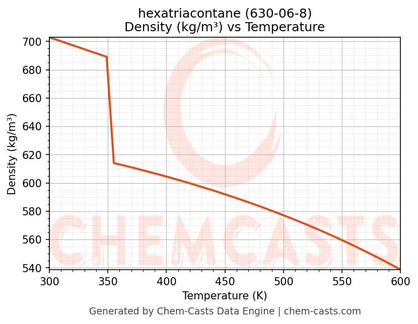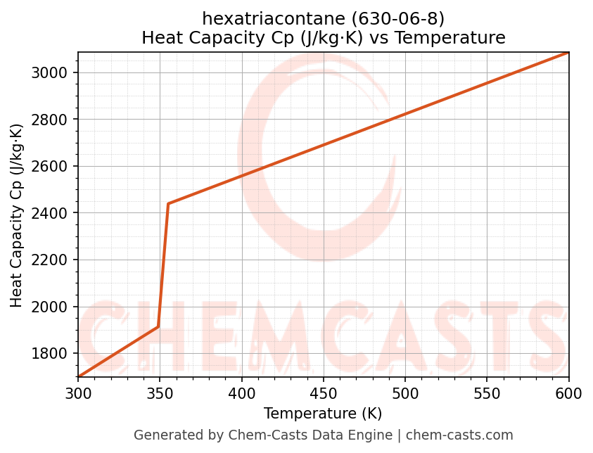 - Specific heat capacity (Cp) indicates the amount of energy required to raise the temperature of hexatriacontane and is critical for energy balance and heat-exchanger design.