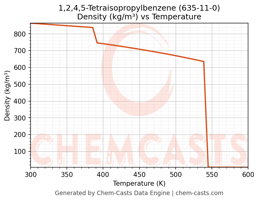 1,2,4,5-Tetraisopropylbenzene Thermodynamic Properties vs Temperature (CAS 635-11-0)