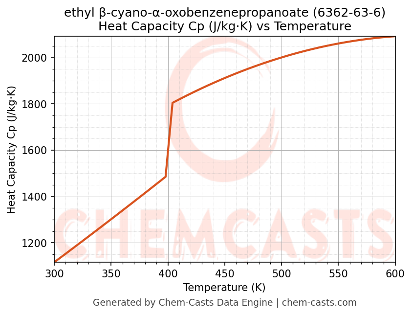- Specific heat capacity (Cp) indicates the amount of energy required to raise the temperature of ethyl β-cyano-α-oxobenzenepropanoate and is critical for energy balance and heat-exchanger design.