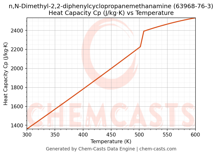 - Specific heat capacity (Cp) indicates the amount of energy required to raise the temperature of n,N-Dimethyl-2,2-diphenylcyclopropanemethanamine and is critical for energy balance and heat-exchanger design.