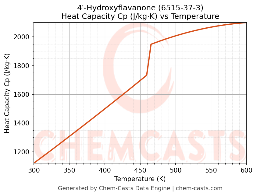 - Specific heat capacity (Cp) indicates the amount of energy required to raise the temperature of 4′-Hydroxyflavanone and is critical for energy balance and heat-exchanger design.