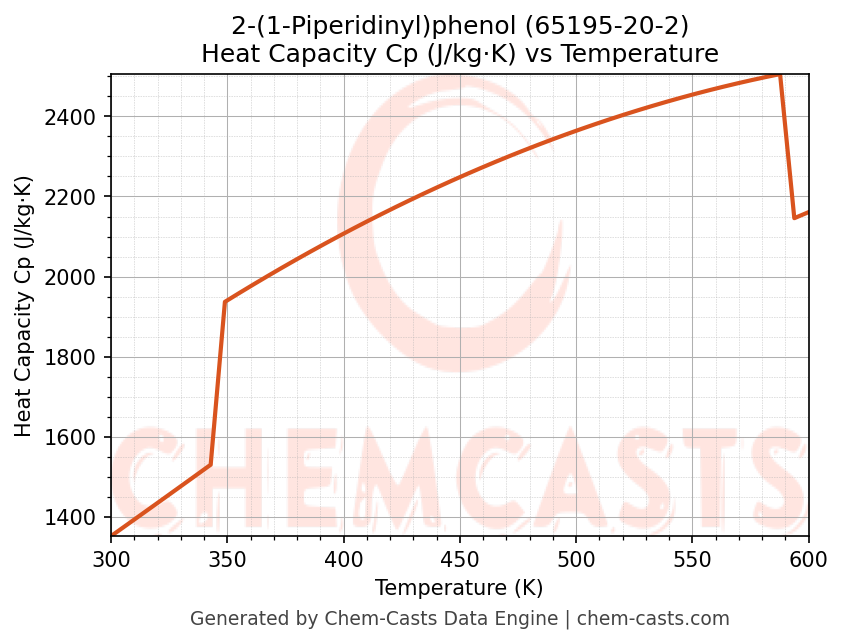 - Specific heat capacity (Cp) indicates the amount of energy required to raise the temperature of 2-(1-Piperidinyl)phenol and is critical for energy balance and heat-exchanger design.