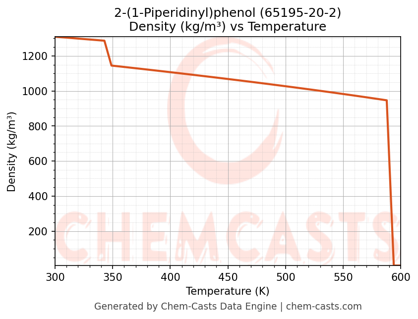 This page presents the temperature-dependent thermodynamic and transport properties of 2-(1-Piperidinyl)phenol (CAS 65195-20-2) calculated at a constant pressure of 1 atm (101325 Pa) over the temperature range 250-500 K.