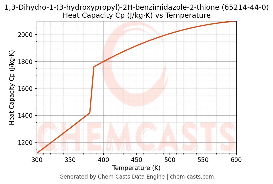 - Specific heat capacity (Cp) indicates the amount of energy required to raise the temperature of 1,3-Dihydro-1-(3-hydroxypropyl)-2H-benzimidazole-2-thione and is critical for energy balance and heat-exchanger design.