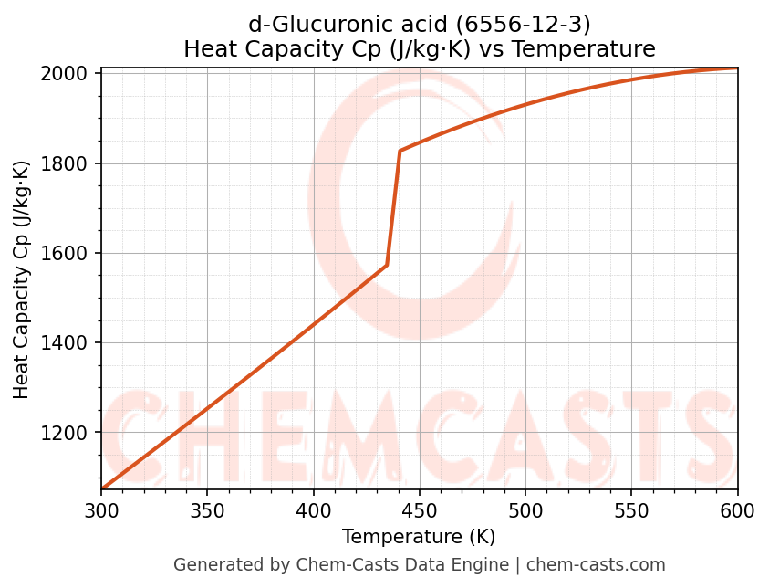 - Specific heat capacity (Cp) indicates the amount of energy required to raise the temperature of d-Glucuronic acid and is critical for energy balance and heat-exchanger design.