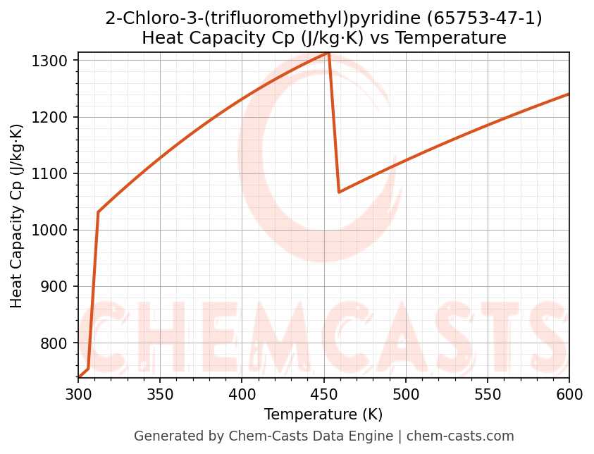 - Specific heat capacity (Cp) indicates the amount of energy required to raise the temperature of 2-Chloro-3-(trifluoromethyl)pyridine and is critical for energy balance and heat-exchanger design.