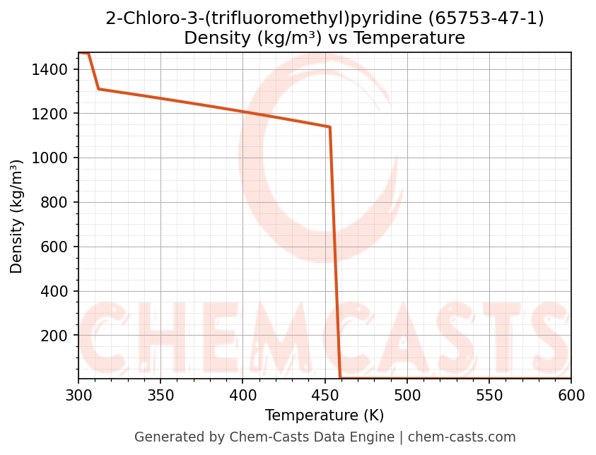This page presents the temperature-dependent thermodynamic and transport properties of 2-Chloro-3-(trifluoromethyl)pyridine (CAS 65753-47-1) calculated at a constant pressure of 1 atm (101325 Pa) over the temperature range 250-500 K.