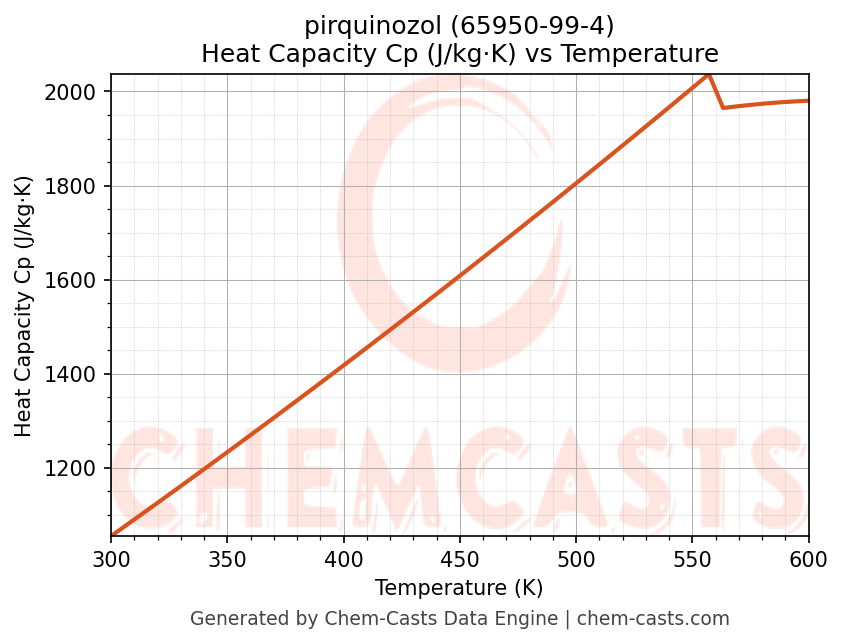 - Specific heat capacity (Cp) indicates the amount of energy required to raise the temperature of pirquinozol and is critical for energy balance and heat-exchanger design.