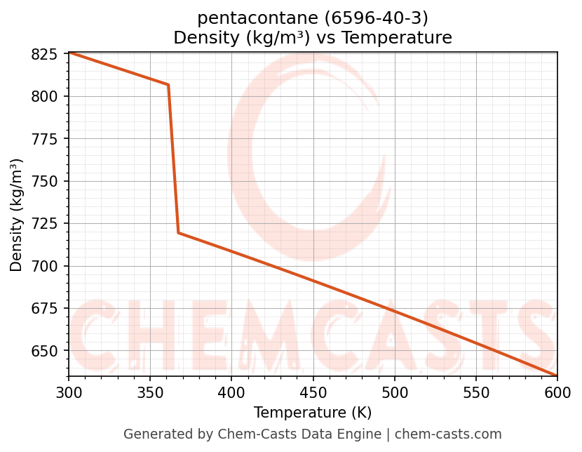 This page presents the temperature-dependent thermodynamic and transport properties of pentacontane (CAS 6596-40-3) calculated at a constant pressure of 1 atm (101325 Pa) over the temperature range 250-500 K.