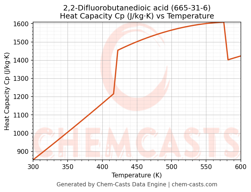 - Specific heat capacity (Cp) indicates the amount of energy required to raise the temperature of 2,2-Difluorobutanedioic acid and is critical for energy balance and heat-exchanger design.