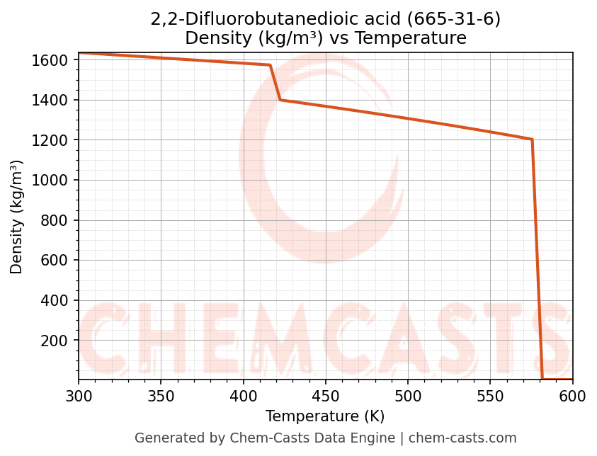 This page presents the temperature-dependent thermodynamic and transport properties of 2,2-Difluorobutanedioic acid (CAS 665-31-6) calculated at a constant pressure of 1 atm (101325 Pa) over the temperature range 250-500 K.