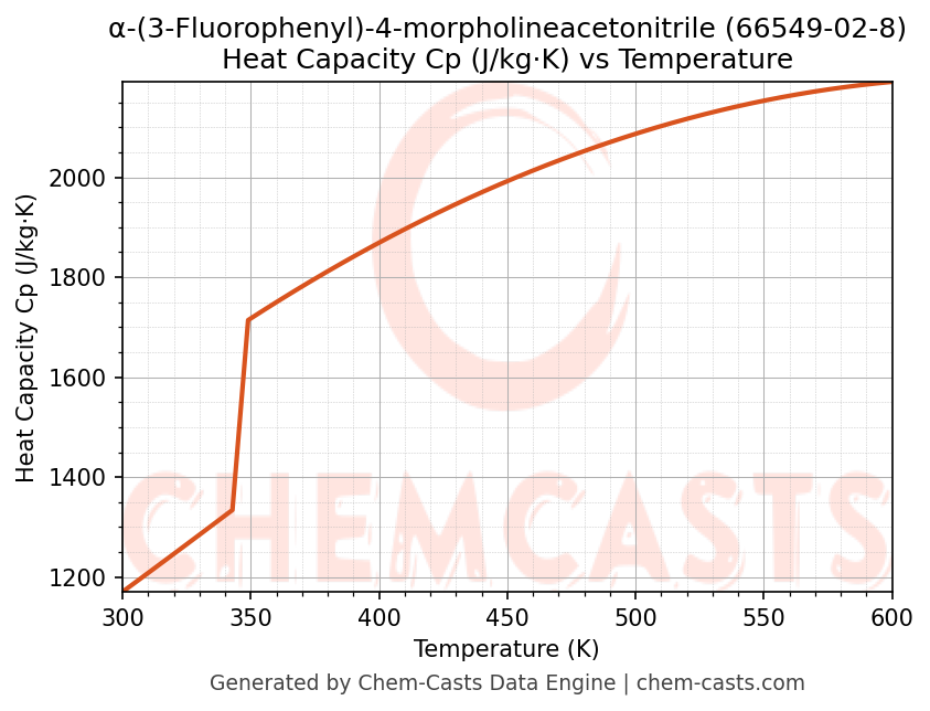- Specific heat capacity (Cp) indicates the amount of energy required to raise the temperature of α-(3-Fluorophenyl)-4-morpholineacetonitrile and is critical for energy balance and heat-exchanger design.