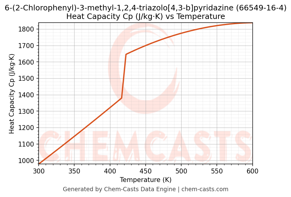 ![Heat Capacity (Cp) vs Temperature chart for 6-(2-Chlorophenyl)-3-methyl-1,2,4-triazolo[4,3-b]pyridazine (CAS 66549-16-4)](https://chemcasts-prod.s3.ap-south-1.amazonaws.com/chem_plots_pconst/66549-16-4-cp.png)