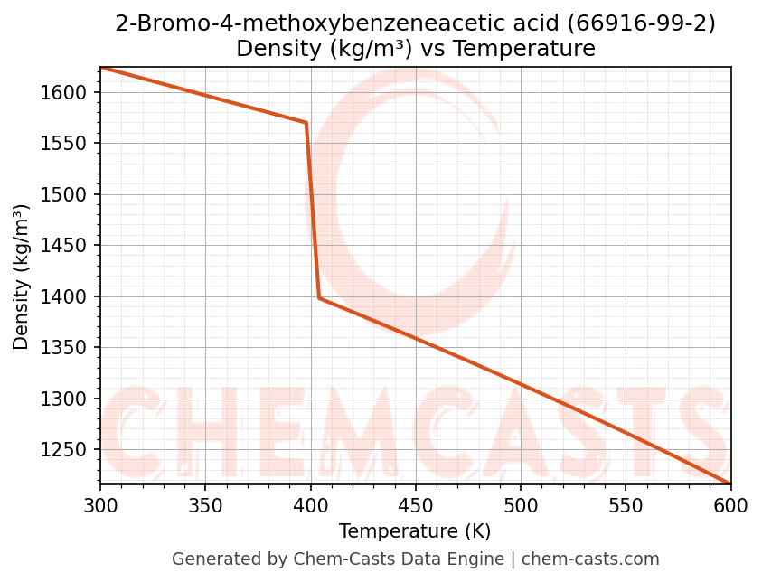This page presents the temperature-dependent thermodynamic and transport properties of 2-Bromo-4-methoxybenzeneacetic acid (CAS 66916-99-2) calculated at a constant pressure of 1 atm (101325 Pa) over the temperature range 250-500 K.