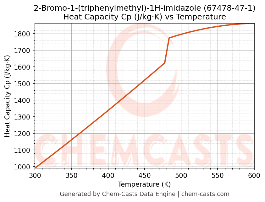 - Specific heat capacity (Cp) indicates the amount of energy required to raise the temperature of 2-Bromo-1-(triphenylmethyl)-1H-imidazole and is critical for energy balance and heat-exchanger design.