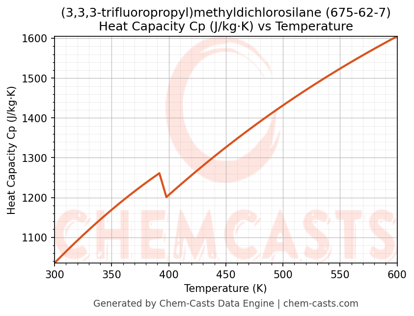 - Specific heat capacity (Cp) indicates the amount of energy required to raise the temperature of (3,3,3-trifluoropropyl)methyldichlorosilane and is critical for energy balance and heat-exchanger design.