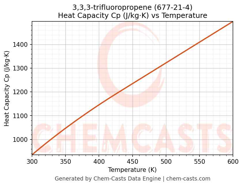 - Specific heat capacity (Cp) indicates the amount of energy required to raise the temperature of 3,3,3-trifluoropropene and is critical for energy balance and heat-exchanger design.