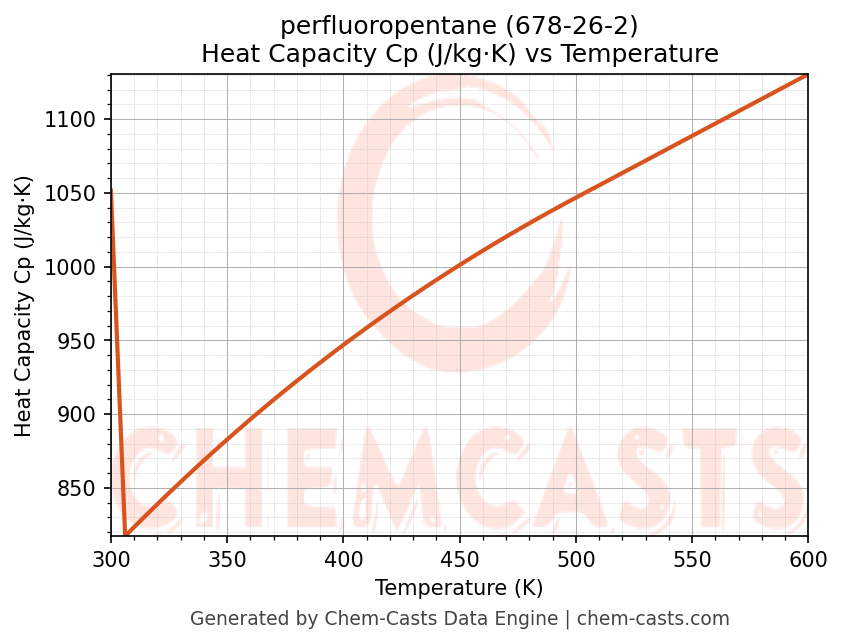 - Specific heat capacity (Cp) indicates the amount of energy required to raise the temperature of perfluoropentane and is critical for energy balance and heat-exchanger design.