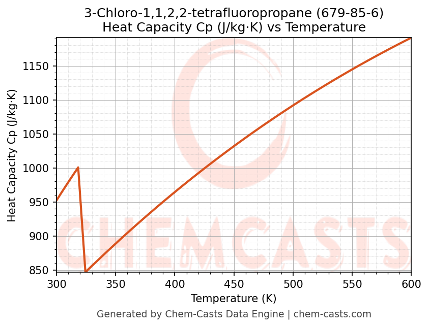 - Specific heat capacity (Cp) indicates the amount of energy required to raise the temperature of 3-Chloro-1,1,2,2-tetrafluoropropane and is critical for energy balance and heat-exchanger design.