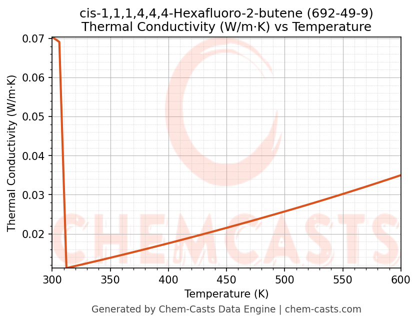 cis-1,1,1,4,4,4-Hexafluoro-2-butene Thermodynamic Properties vs Temperature (CAS 692-49-9)