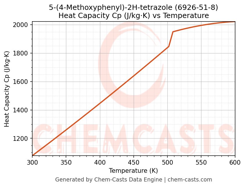 - Specific heat capacity (Cp) indicates the amount of energy required to raise the temperature of 5-(4-Methoxyphenyl)-2H-tetrazole and is critical for energy balance and heat-exchanger design.