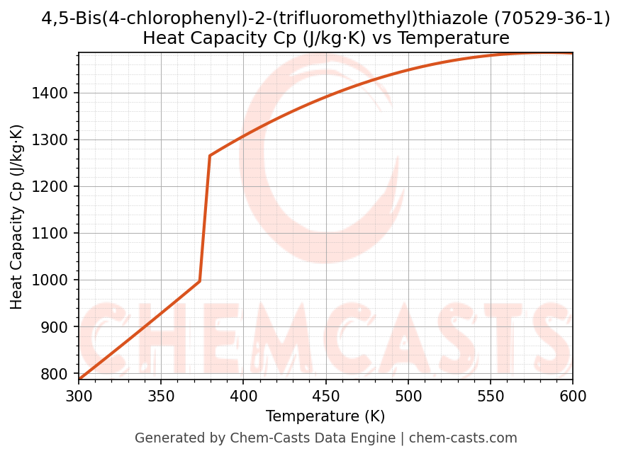 - Specific heat capacity (Cp) indicates the amount of energy required to raise the temperature of 4,5-Bis(4-chlorophenyl)-2-(trifluoromethyl)thiazole and is critical for energy balance and heat-exchanger design.