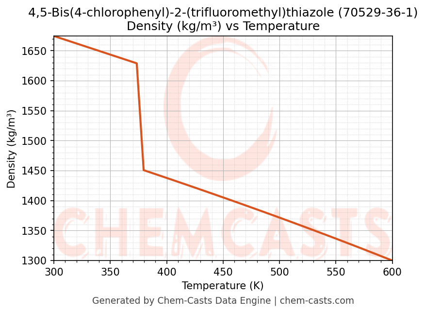 This page presents the temperature-dependent thermodynamic and transport properties of 4,5-Bis(4-chlorophenyl)-2-(trifluoromethyl)thiazole (CAS 70529-36-1) calculated at a constant pressure of 1 atm (101325 Pa) over the temperature range 250-500 K.
