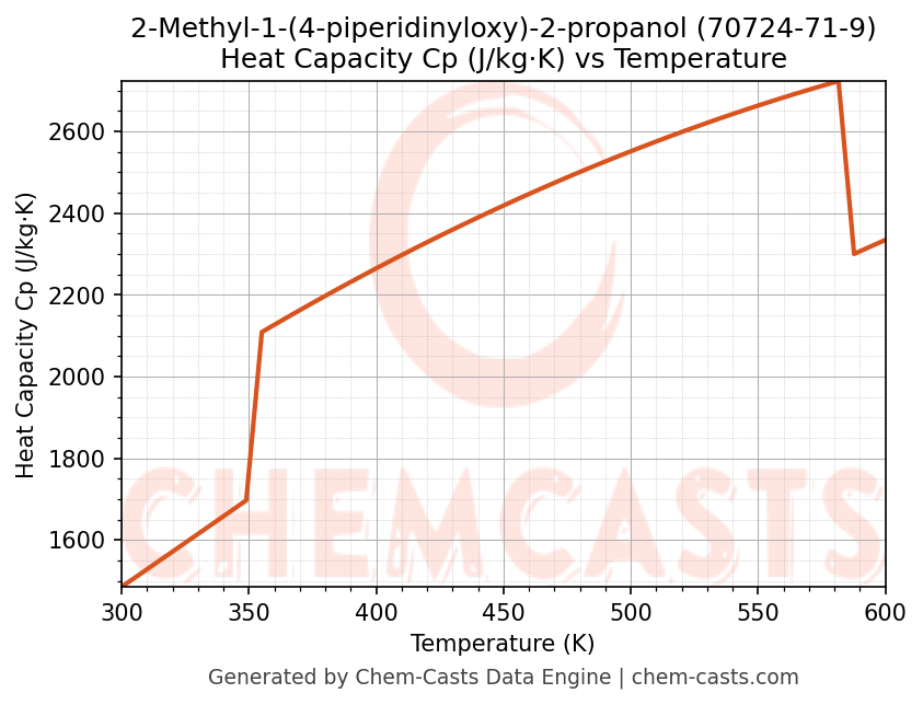 - Specific heat capacity (Cp) indicates the amount of energy required to raise the temperature of 2-Methyl-1-(4-piperidinyloxy)-2-propanol and is critical for energy balance and heat-exchanger design.