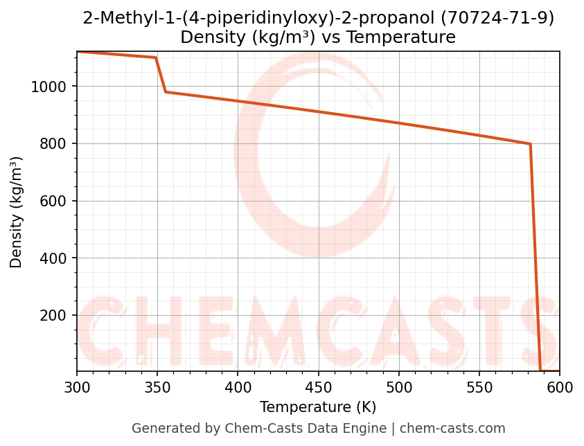 This page presents the temperature-dependent thermodynamic and transport properties of 2-Methyl-1-(4-piperidinyloxy)-2-propanol (CAS 70724-71-9) calculated at a constant pressure of 1 atm (101325 Pa) over the temperature range 250-500 K.