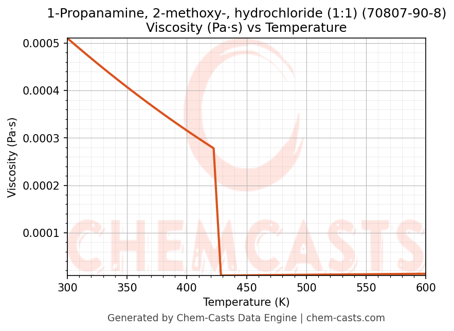 This page presents the temperature-dependent thermodynamic and transport properties of 1-Propanamine, 2-methoxy-, hydrochloride (1:1) (CAS 70807-90-8) calculated at a constant pressure of 1 atm (101325 Pa) over the temperature range 250-500 K.