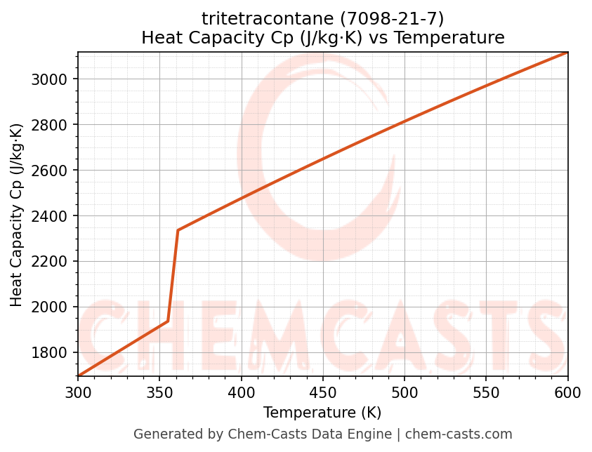 - Specific heat capacity (Cp) indicates the amount of energy required to raise the temperature of tritetracontane and is critical for energy balance and heat-exchanger design.