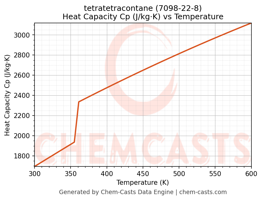 - Specific heat capacity (Cp) indicates the amount of energy required to raise the temperature of tetratetracontane and is critical for energy balance and heat-exchanger design.