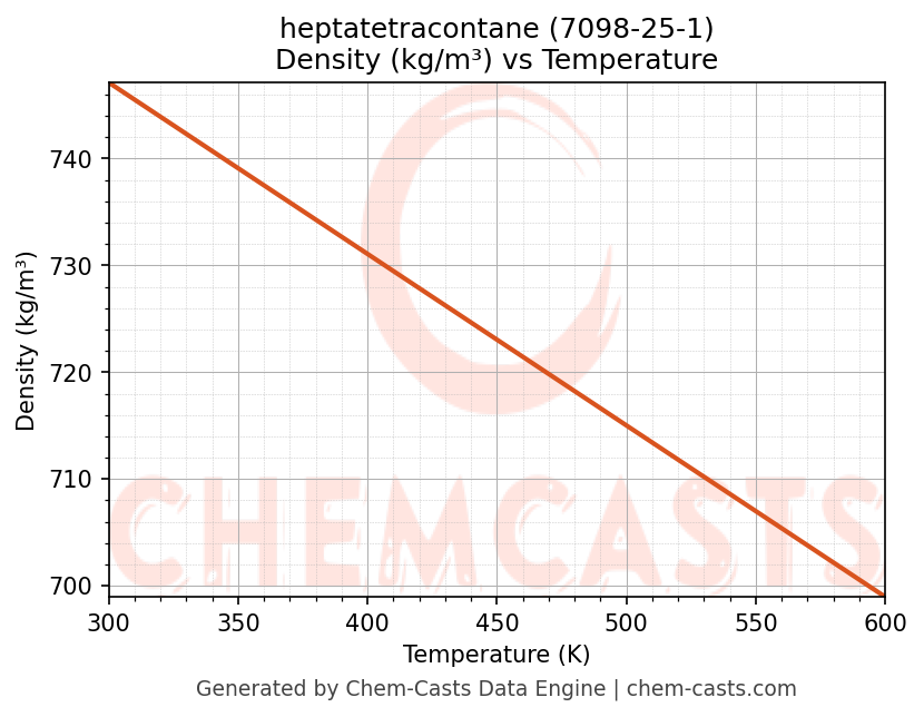 - Specific heat capacity (Cp) indicates the amount of energy required to raise the temperature of heptatetracontane and is critical for energy balance and heat-exchanger design.