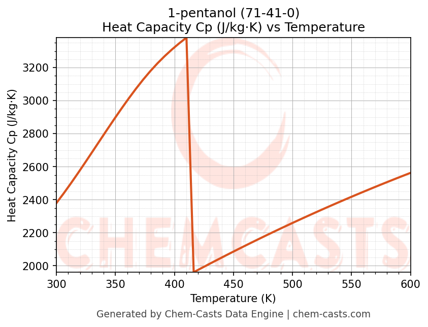 - Specific heat capacity (Cp) indicates the amount of energy required to raise the temperature of 1-pentanol and is critical for energy balance and heat-exchanger design.