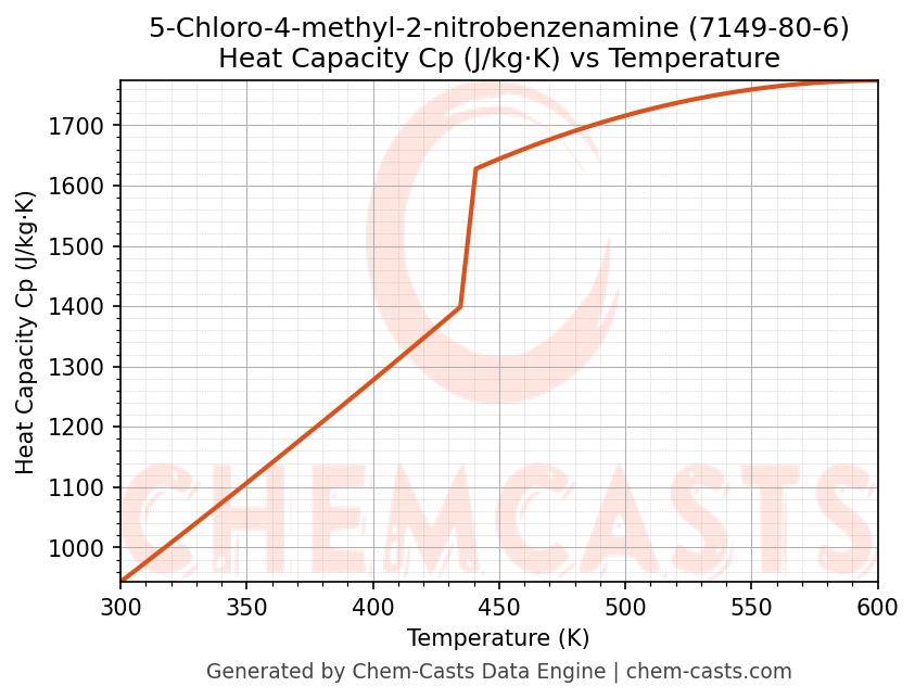 - Specific heat capacity (Cp) indicates the amount of energy required to raise the temperature of 5-Chloro-4-methyl-2-nitrobenzenamine and is critical for energy balance and heat-exchanger design.