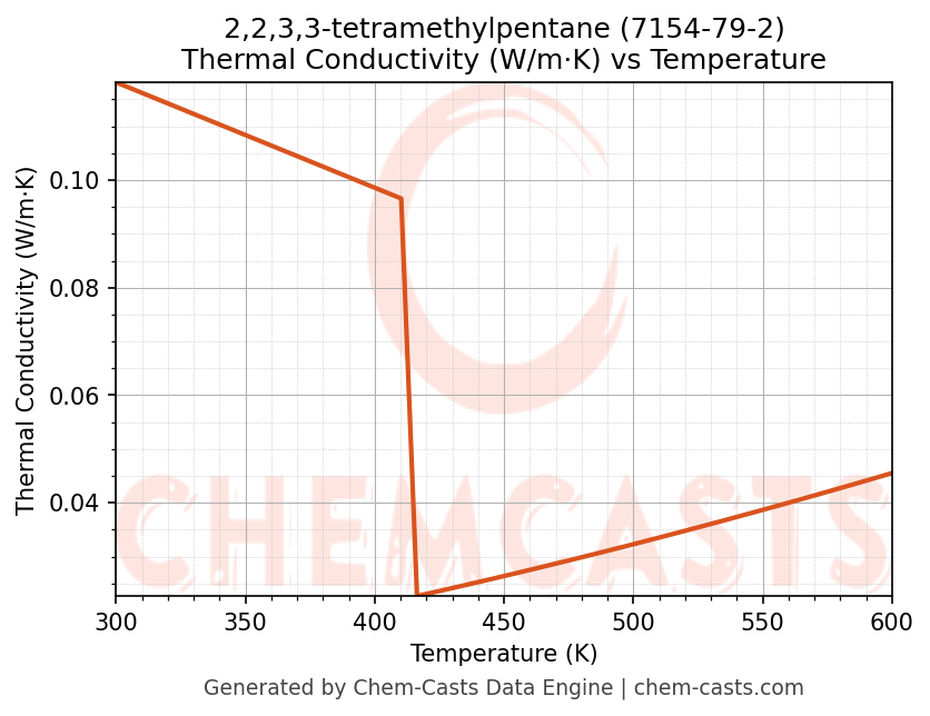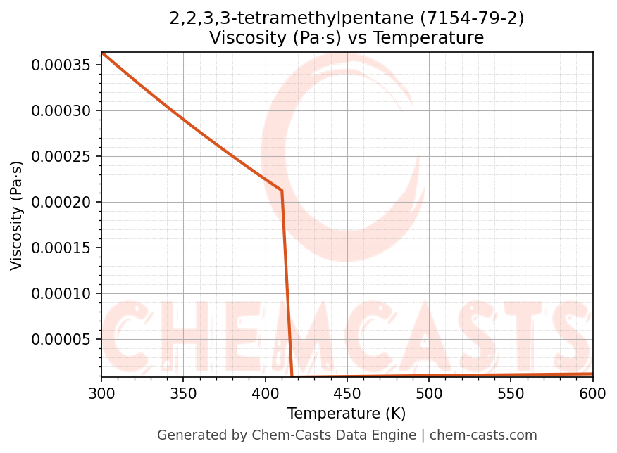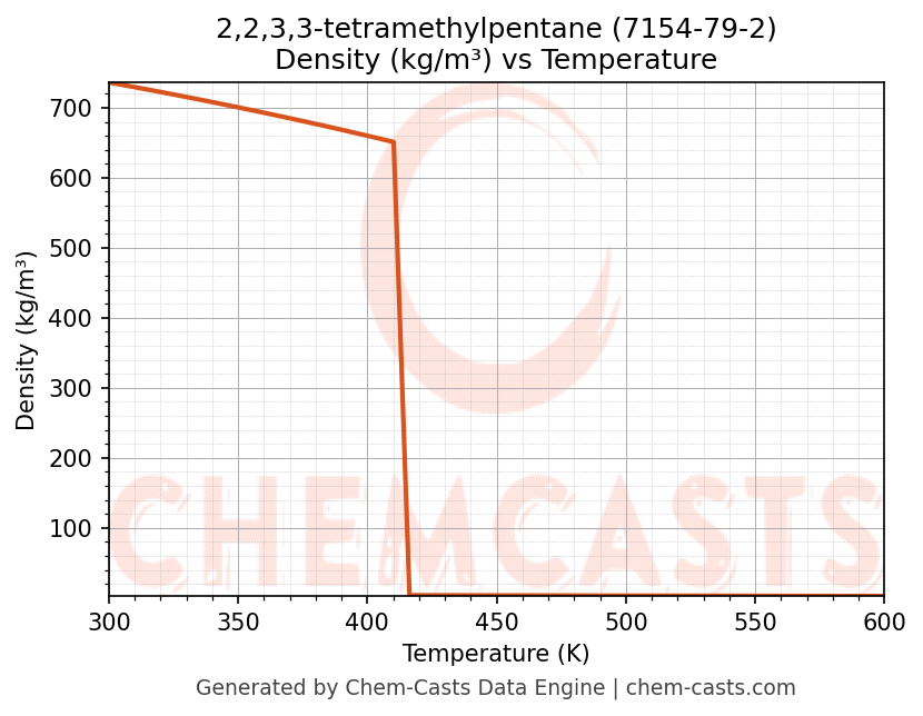 This page presents the temperature-dependent thermodynamic and transport properties of 2,2,3,3-tetramethylpentane (CAS 7154-79-2) calculated at a constant pressure of 1 atm (101325 Pa) over the temperature range 250-500 K.