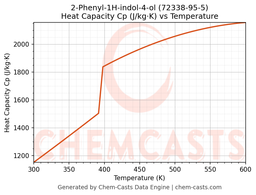 - Specific heat capacity (Cp) indicates the amount of energy required to raise the temperature of 2-Phenyl-1H-indol-4-ol and is critical for energy balance and heat-exchanger design.