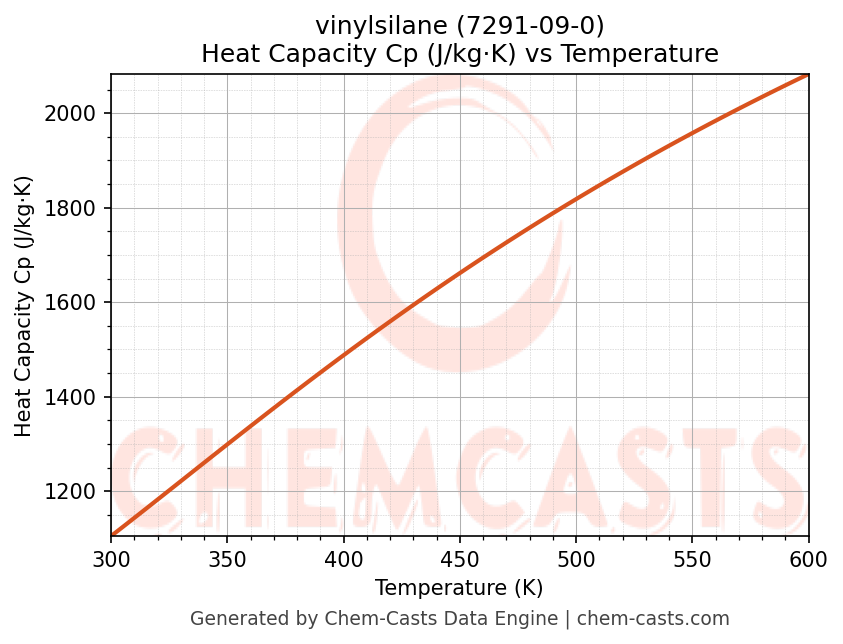 - Specific heat capacity (Cp) indicates the amount of energy required to raise the temperature of vinylsilane and is critical for energy balance and heat-exchanger design.