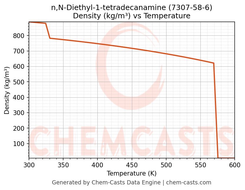 - Specific heat capacity (Cp) indicates the amount of energy required to raise the temperature of n,N-Diethyl-1-tetradecanamine and is critical for energy balance and heat-exchanger design.