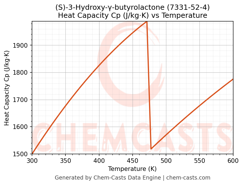 - Specific heat capacity (Cp) indicates the amount of energy required to raise the temperature of (S)-3-Hydroxy-γ-butyrolactone and is critical for energy balance and heat-exchanger design.