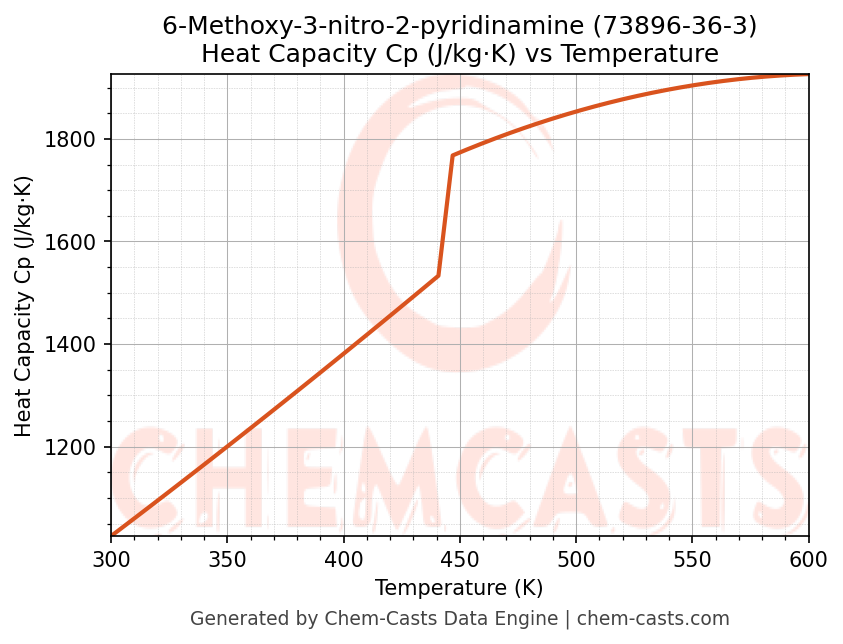 - Specific heat capacity (Cp) indicates the amount of energy required to raise the temperature of 6-Methoxy-3-nitro-2-pyridinamine and is critical for energy balance and heat-exchanger design.