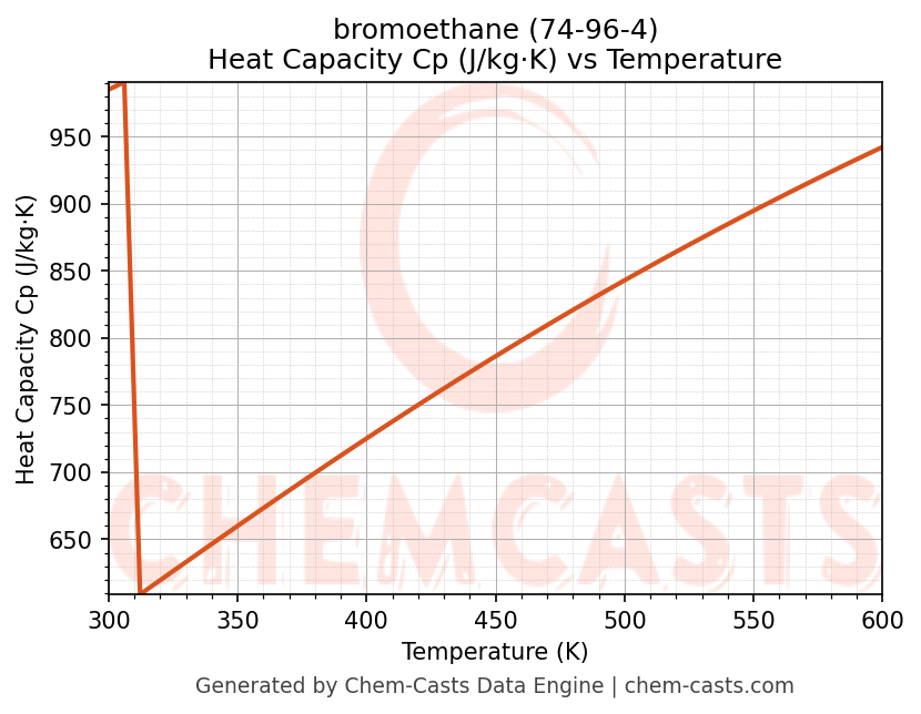 - Specific heat capacity (Cp) indicates the amount of energy required to raise the temperature of bromoethane and is critical for energy balance and heat-exchanger design.