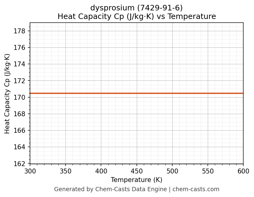 - Specific heat capacity (Cp) indicates the amount of energy required to raise the temperature of dysprosium and is critical for energy balance and heat-exchanger design.