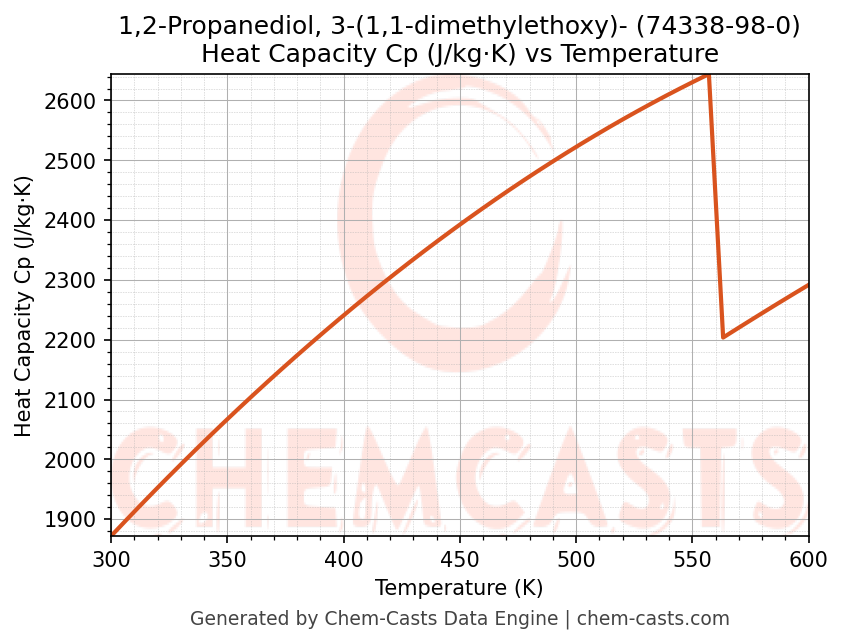 - Specific heat capacity (Cp) indicates the amount of energy required to raise the temperature of 1,2-Propanediol, 3-(1,1-dimethylethoxy)- and is critical for energy balance and heat-exchanger design.