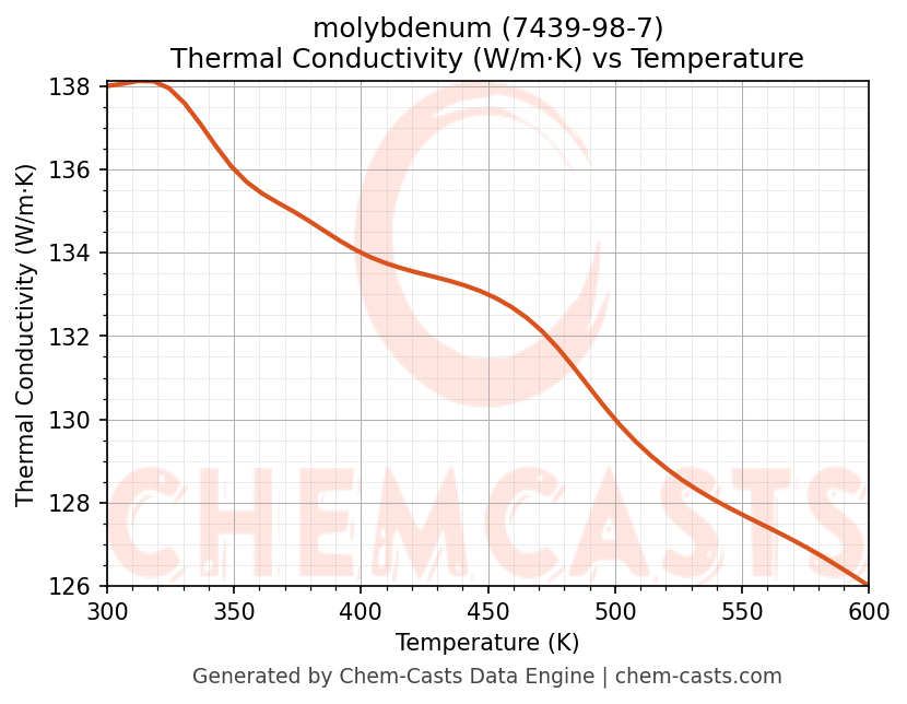 molybdenum Thermodynamic Properties vs Temperature (CAS 7439-98-7)
