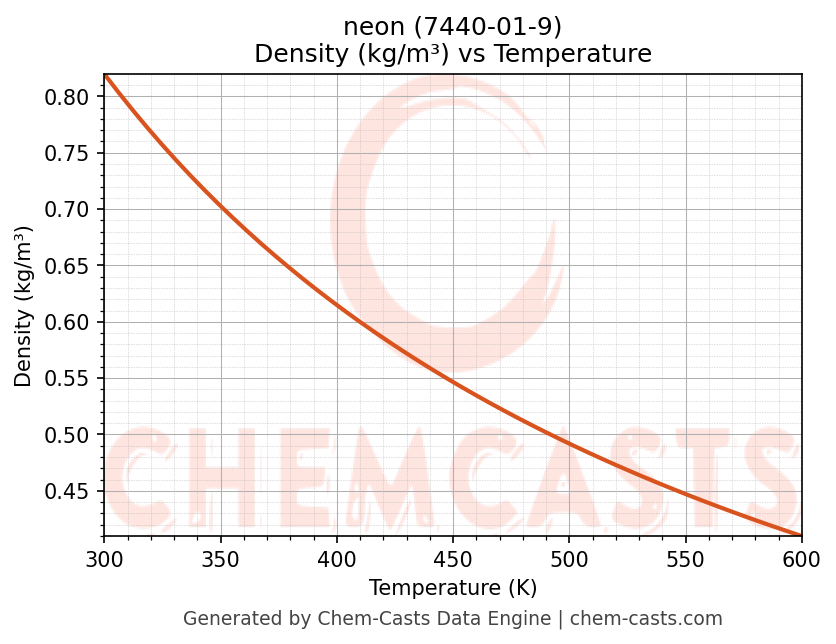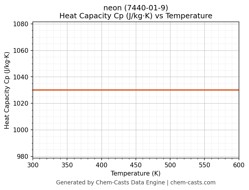 - Specific heat capacity (Cp) indicates the amount of energy required to raise the temperature of neon and is critical for energy balance and heat-exchanger design.