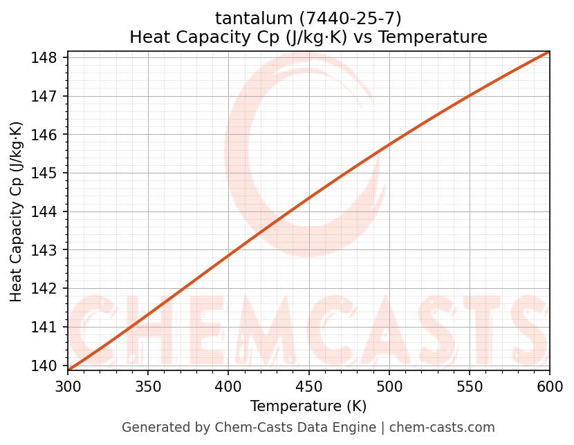 - Specific heat capacity (Cp) indicates the amount of energy required to raise the temperature of tantalum and is critical for energy balance and heat-exchanger design.