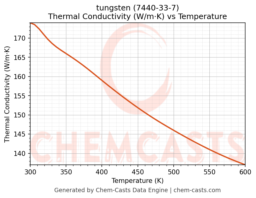 tungsten Thermodynamic Properties vs Temperature (CAS 7440-33-7)